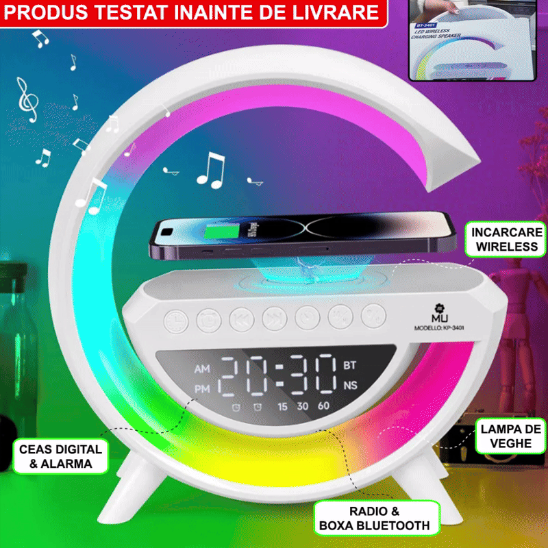 Boxa Portabila cu Iluminare LED, Radio FM, Microfon Incorporat, Ceas Digital, Baterie Reincarcabila
