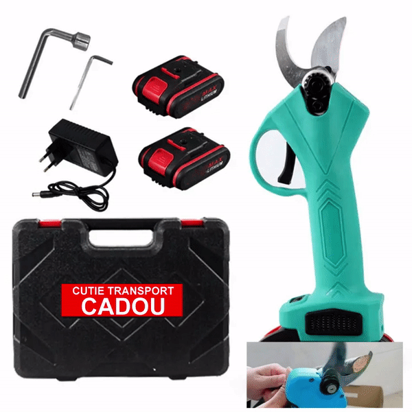Pachet 4 : Foarfeca Electrica De Gradina Cu 2 Acumulatori De 24V + Drujba Electrica Cu 1 x Lama 31 cm (12 INCH), 1 x Lant, 2 x Acumulator 48V +CADOU SURPRIZA